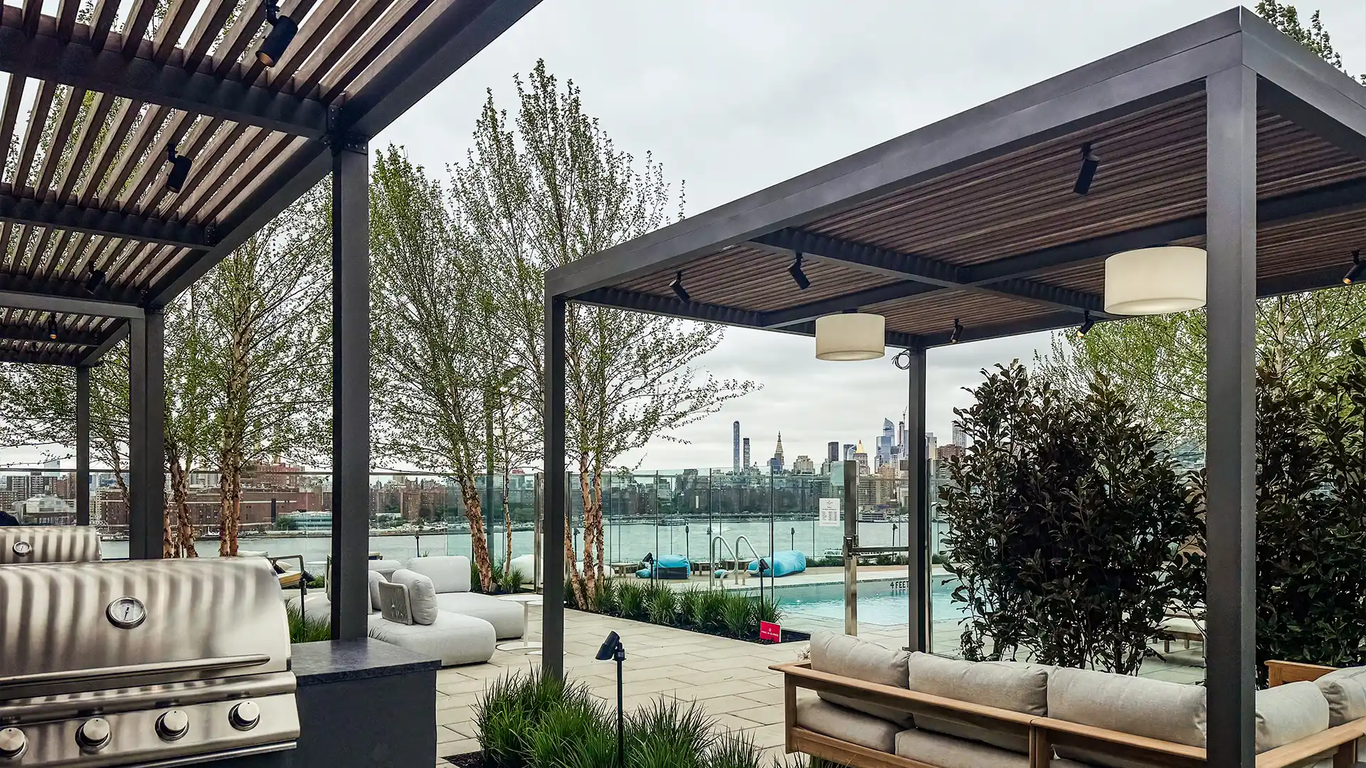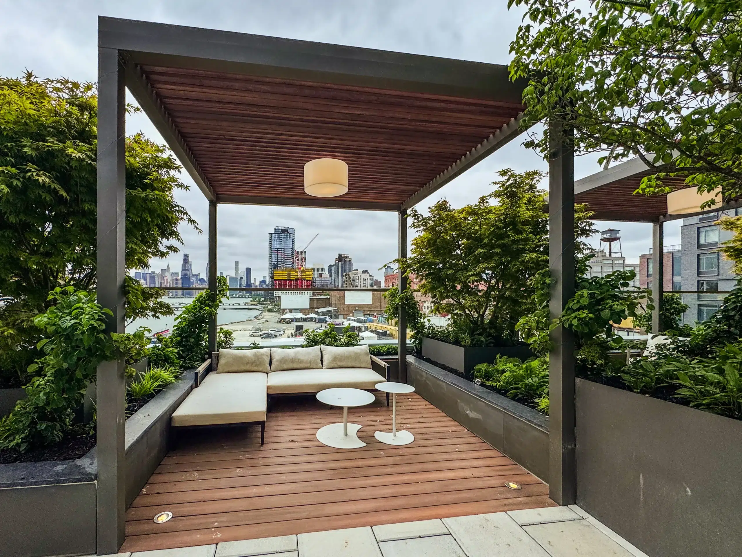 The pergolas were crafted using durable, weather-resistant wood selected for long-term performance. Every beam, joint, and detail was engineered to withstand New York’s harsh weather conditions while maintaining a high-end architectural look.