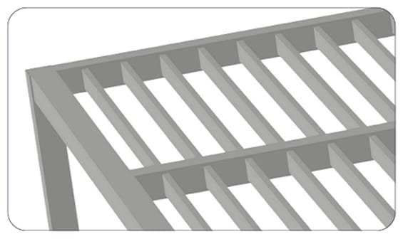 Support Beam - Frame - Vertical Slats. DIRECT LIGHTING 12W - 24V - 630 Im Recommended - 3ft intervals, 1ft from frame