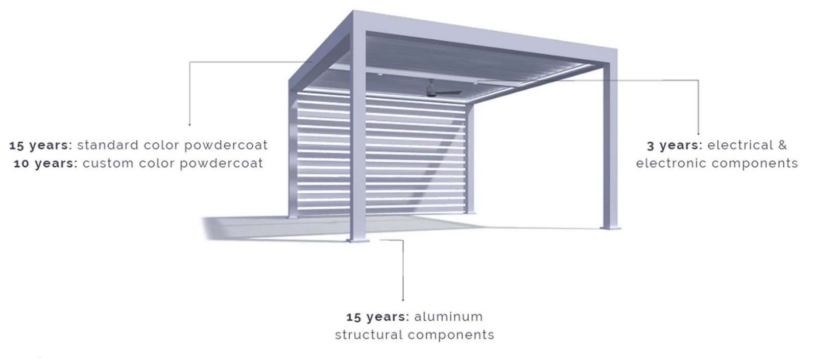 Discover smart sensors, integrated lighting, versatile color options, warranty assurance, and detailed technical specifications that make our pergola the perfect choice for your outdoor living.