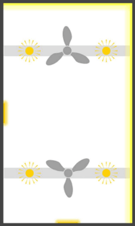 Support Beam - Frame DIRECT LIGHTING 4W - 24V - 320 lm Recommended - 2.5ft intervals, 1ft from frame Beware of the potential strobing effect when a fan is on.