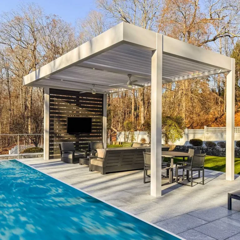 Poolside Motorized Pergola Installation in Greenwich, Connecticut