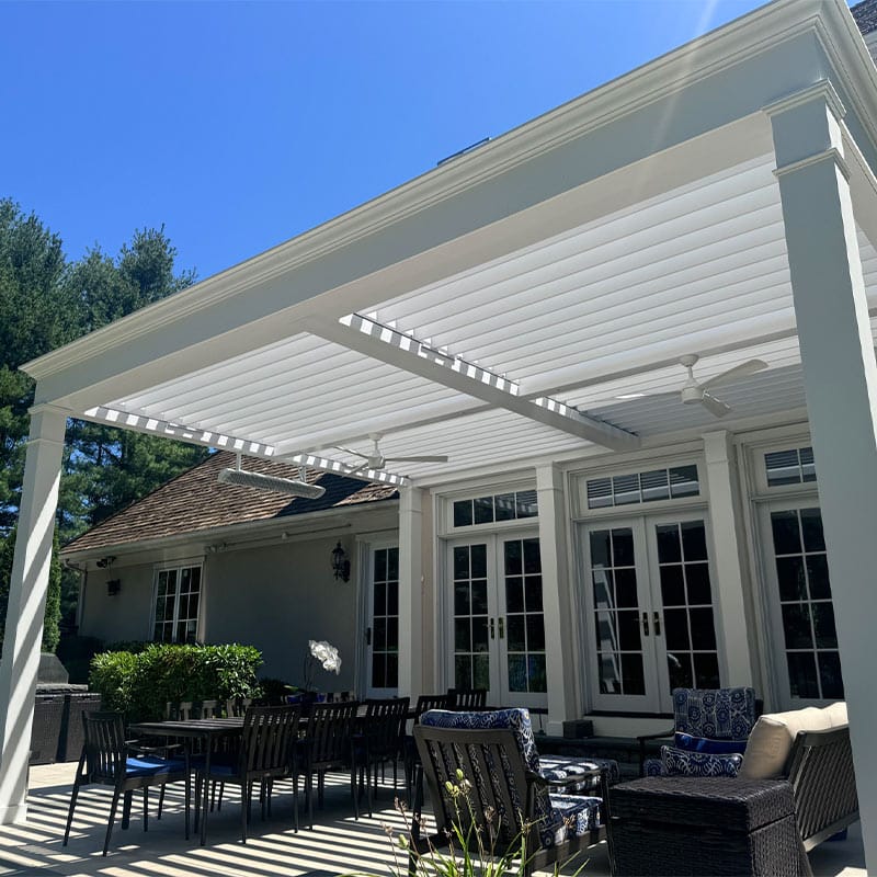 Classic Style Motorized Pergola Installed In Manhasset New York